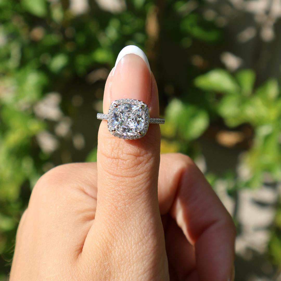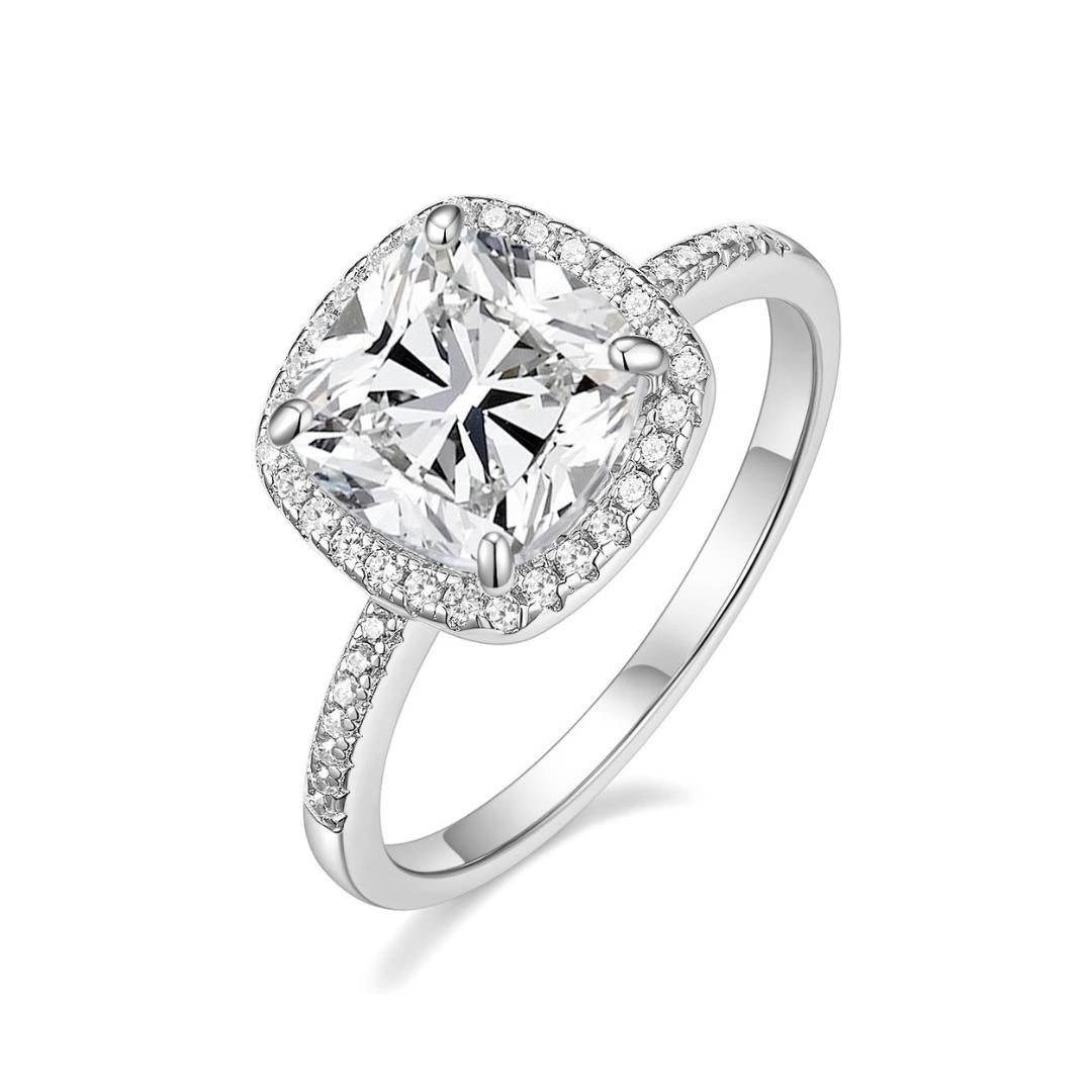 Meet The Adore — a stunning cushion halo ring designed to captivate. Featuring a dazzling 3-carat conflict-free simulated diamond at its center, it rests on a durable 925 sterling silver band plated in rhodium for a brilliant, long-lasting shine. Handcrafted with timeless elegance, this ring is perfect for anyone seeking a truly unique and luxurious wedding or engagement piece.