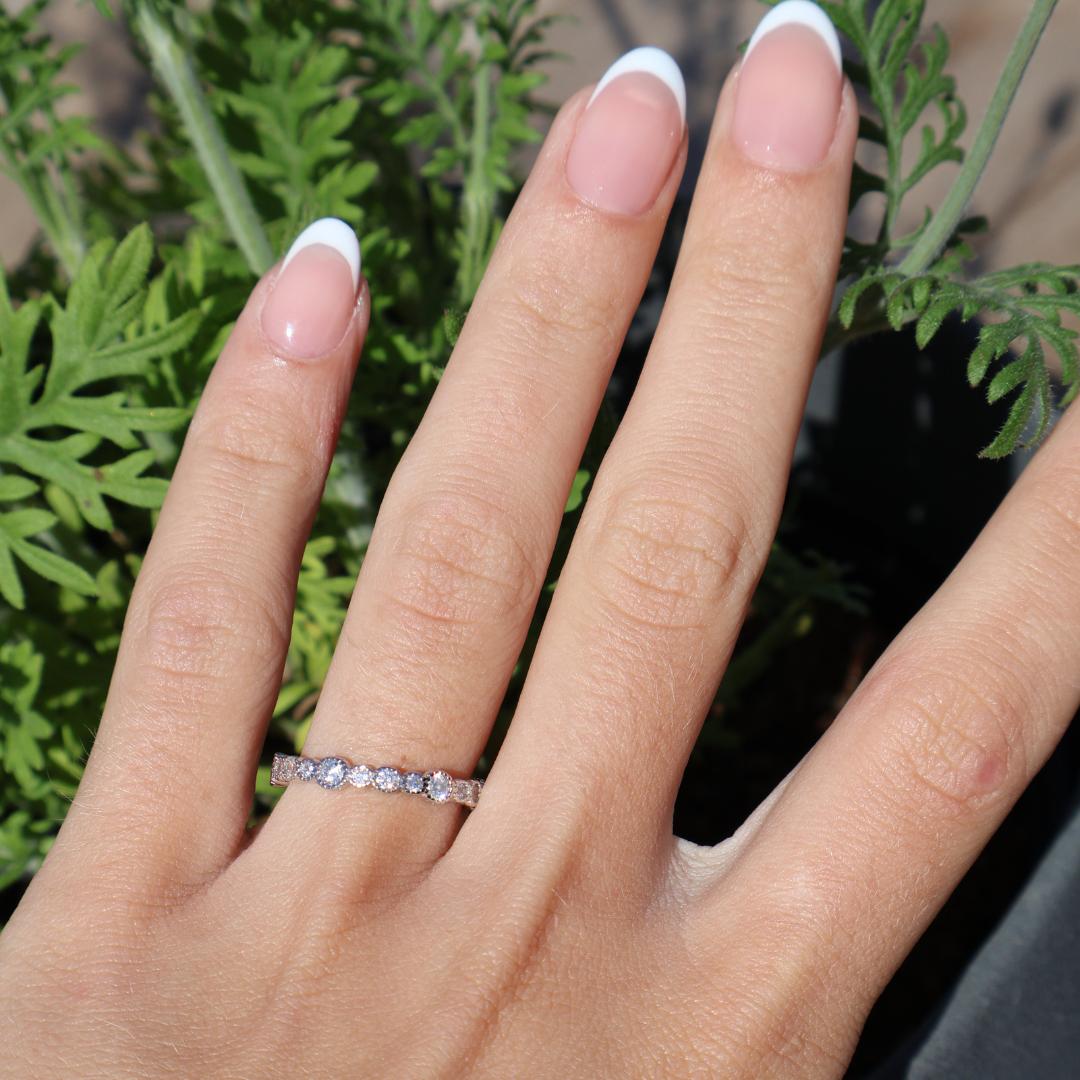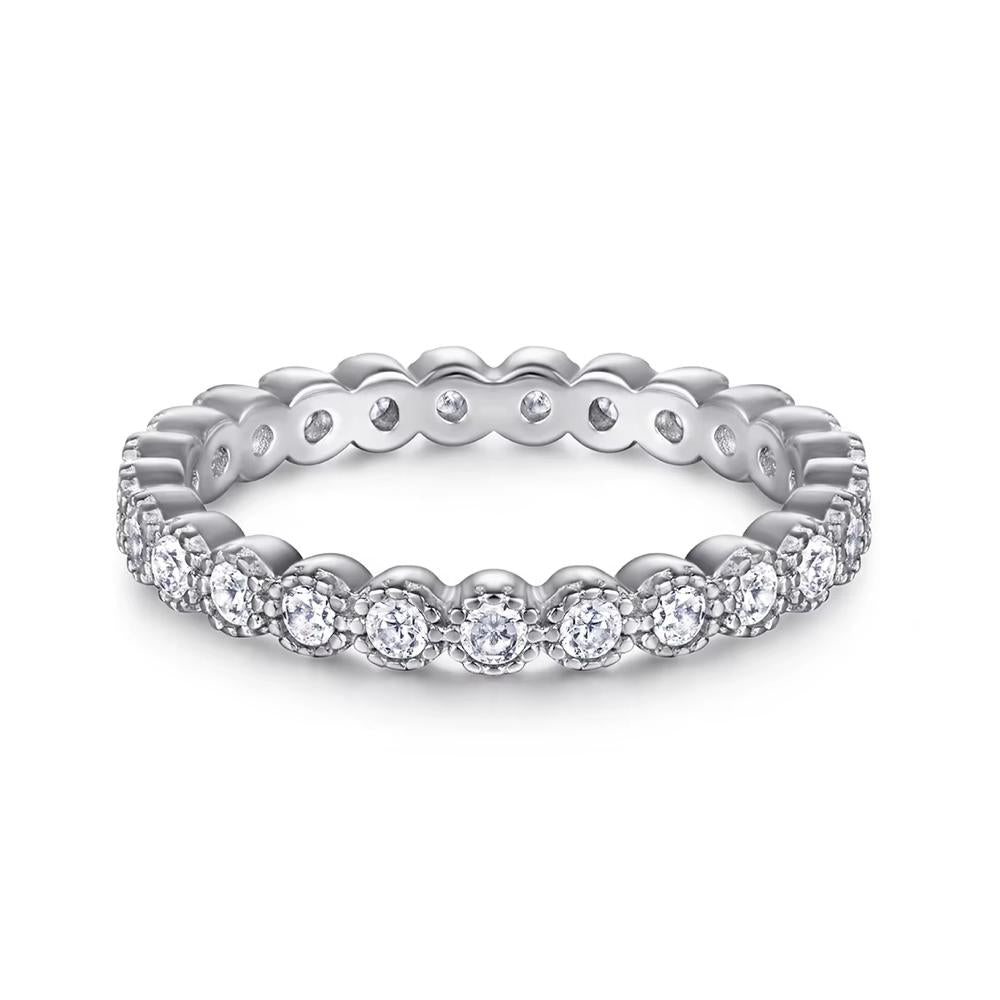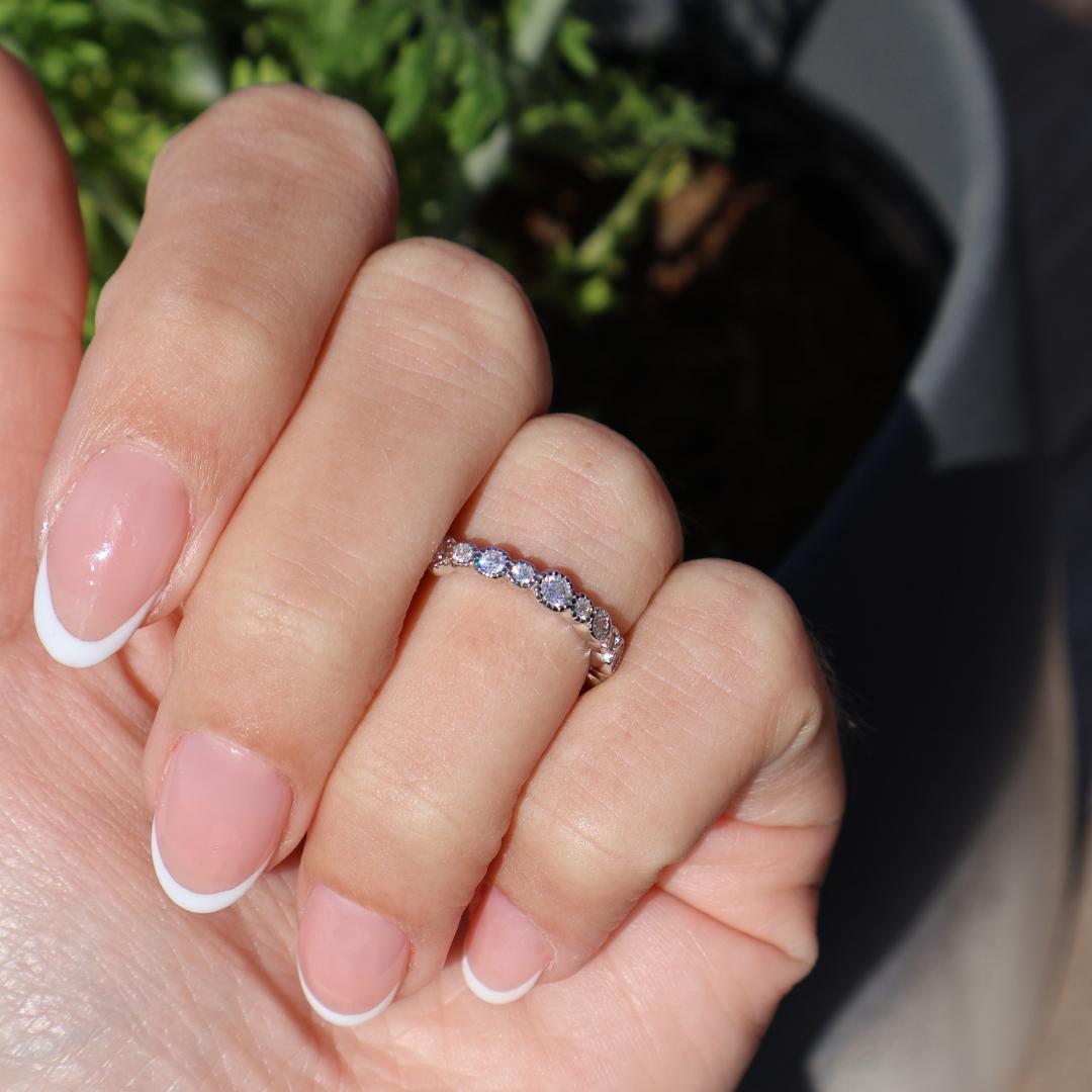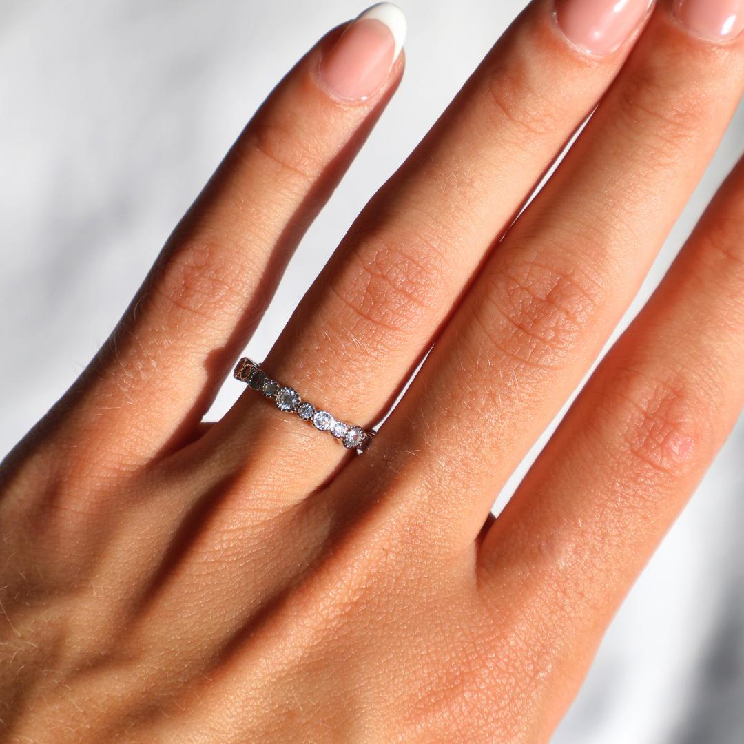 Simply stunning and designed with you in mind - The Aria is a statement piece that radiates brilliance from every angle. Featuring an array of beautifully cut stones in varying sizes, this 3.3 mm band delivers a one-of-a-kind sparkle and presence. Crafted from 925 sterling silver and finished with a protective rhodium plating, it offers both durability and dazzling shine. Whether worn solo, as a wedding band, engagement ring, or paired with another favorite piece, The Aria amplifies your sparkle - effortlessly