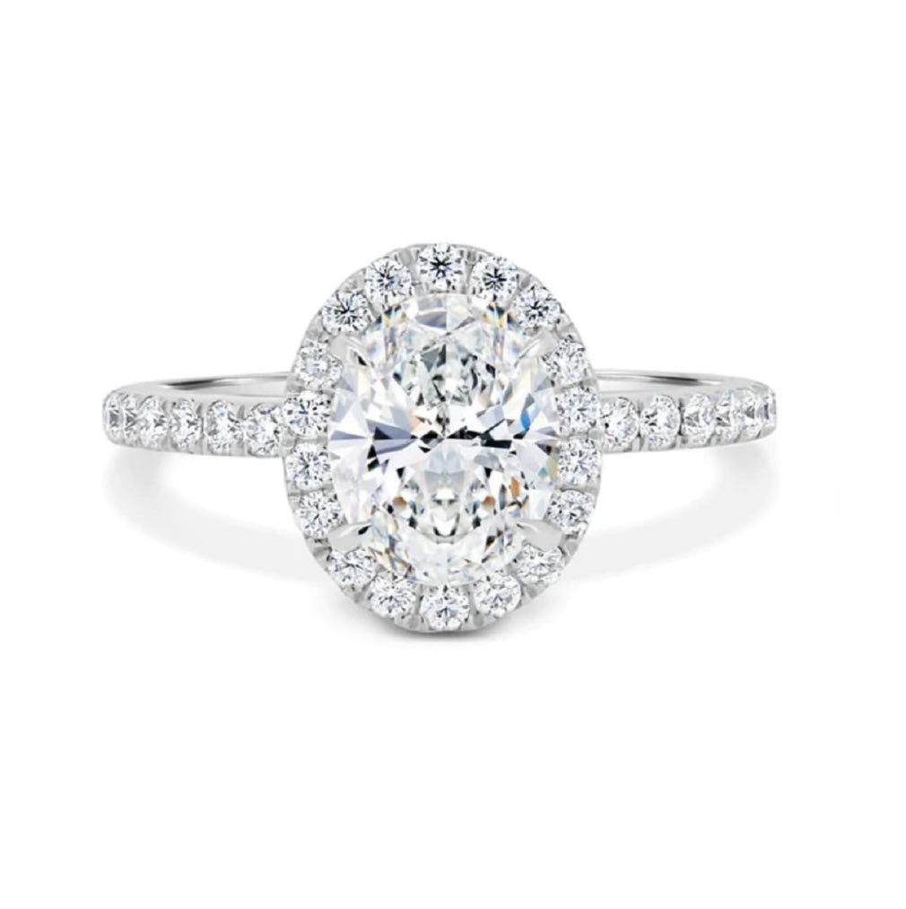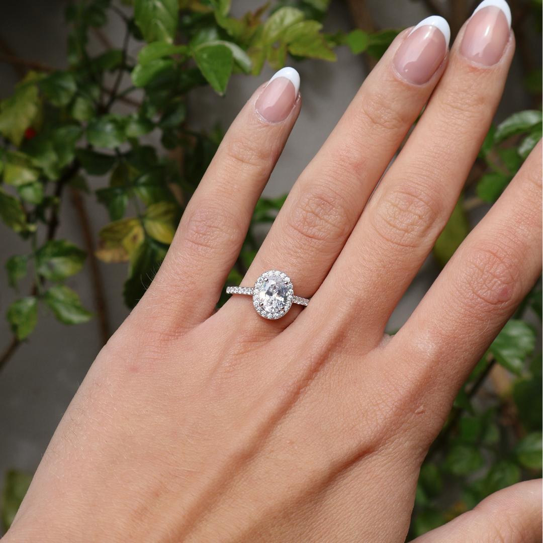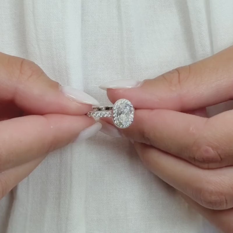 Celebrate a love that’s timeless with The Darling, a captivating 1.5-carat oval halo engagement ring. Featuring a dazzling conflict-free simulated diamond set in 925 sterling silver, this ring radiates elegance and everlasting charm. Perfect on its own or paired with one of our coordinating bands, such as The Promise or Forever, it transforms effortlessly into a breathtaking wedding set - bringing the “happily ever after” she’s always dreamed of to life.