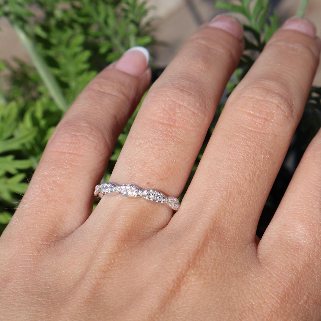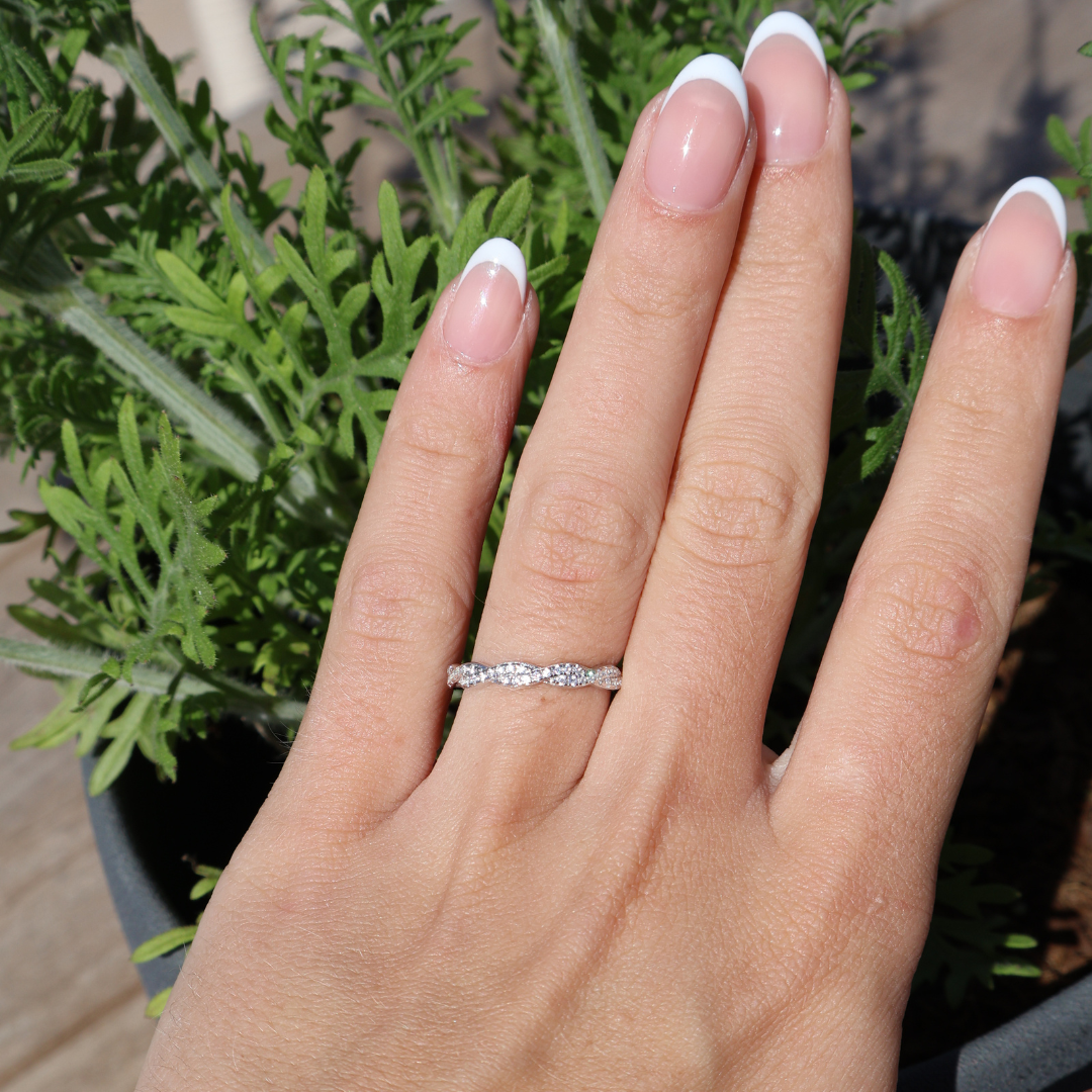 If sparkle is what you’re after, The Forever delivers in every way. This full eternity band showcases a beautifully intricate twisting gemstone design that makes any ring stack come alive. Crafted from solid 925 sterling silver, it combines lasting shine with elegant sophistication. Wear The Forever solo or pair it with your engagement ring for a stunning set—our top picks? It looks absolutely breathtaking with The Helena or The Delilah.
