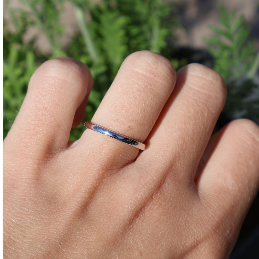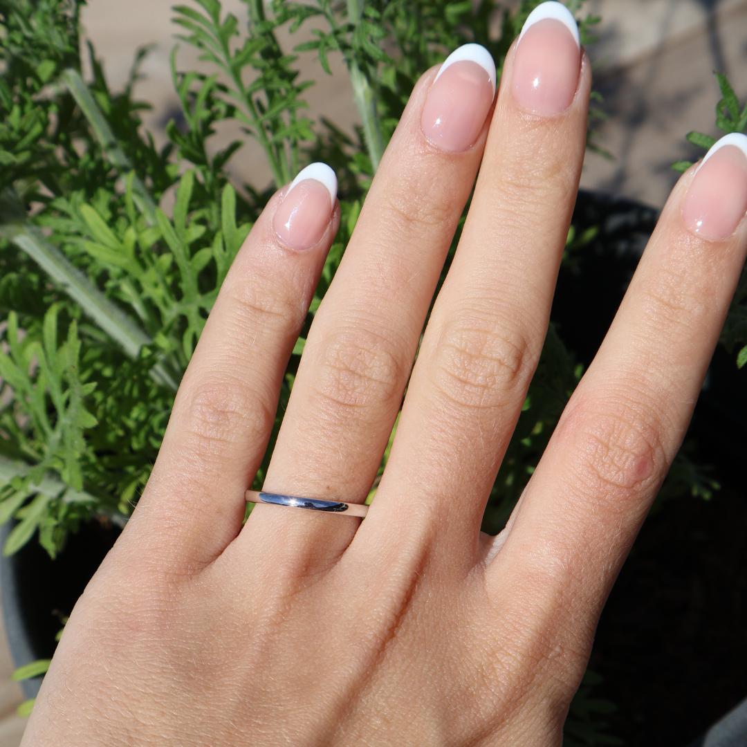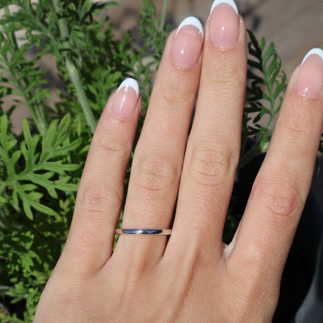 Show her she’s truly the one with The Forever. This timeless 2 mm solid 925 sterling silver band is slim, sleek, and brilliantly shiny. Its minimalist design makes it the perfect complement to virtually any ring, including all of our wedding sets. Versatile and elegant, The Forever works beautifully as a wedding band, engagement ring, or promise ring. Also available in gold.