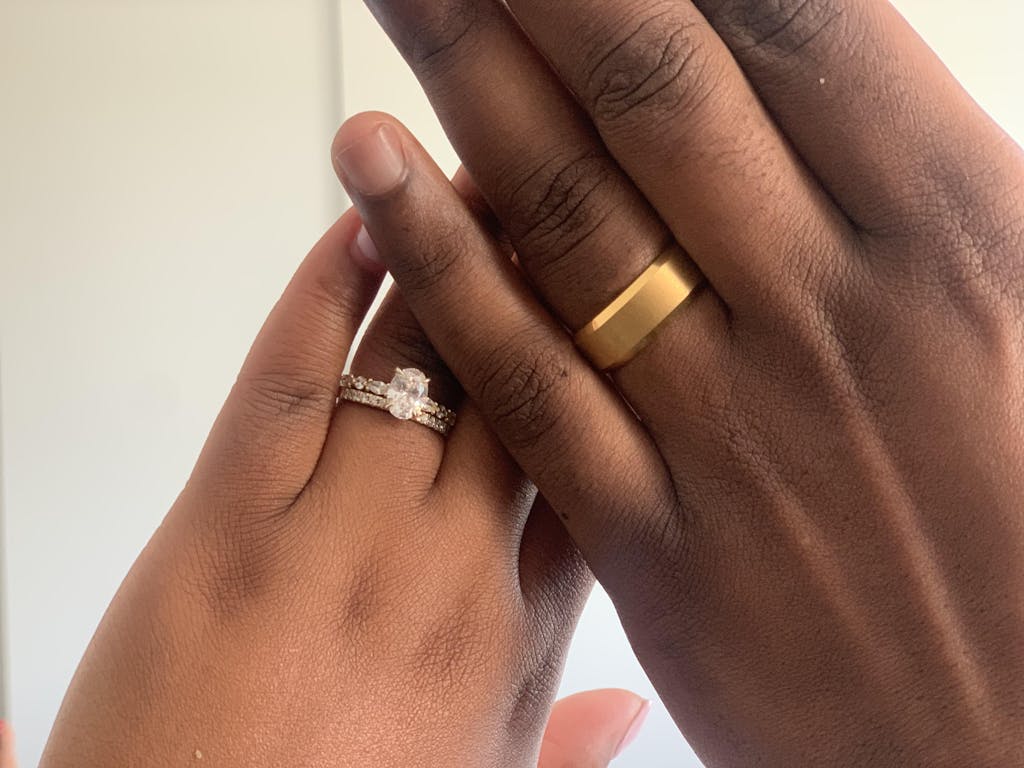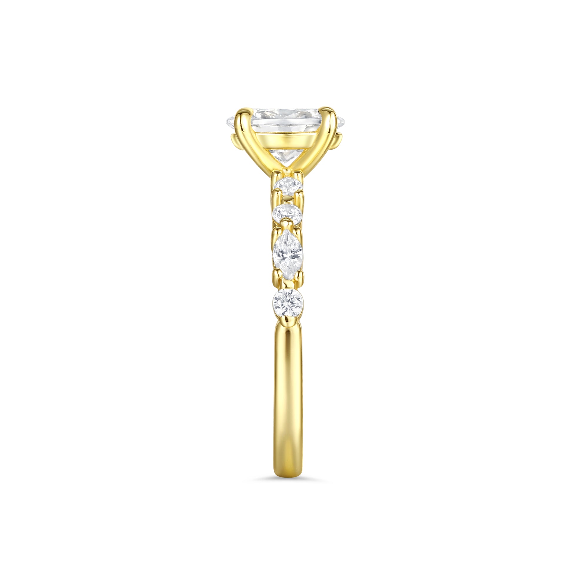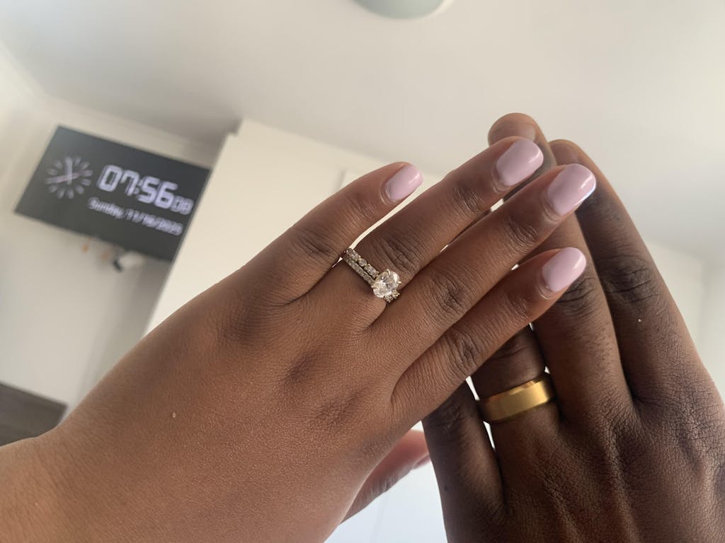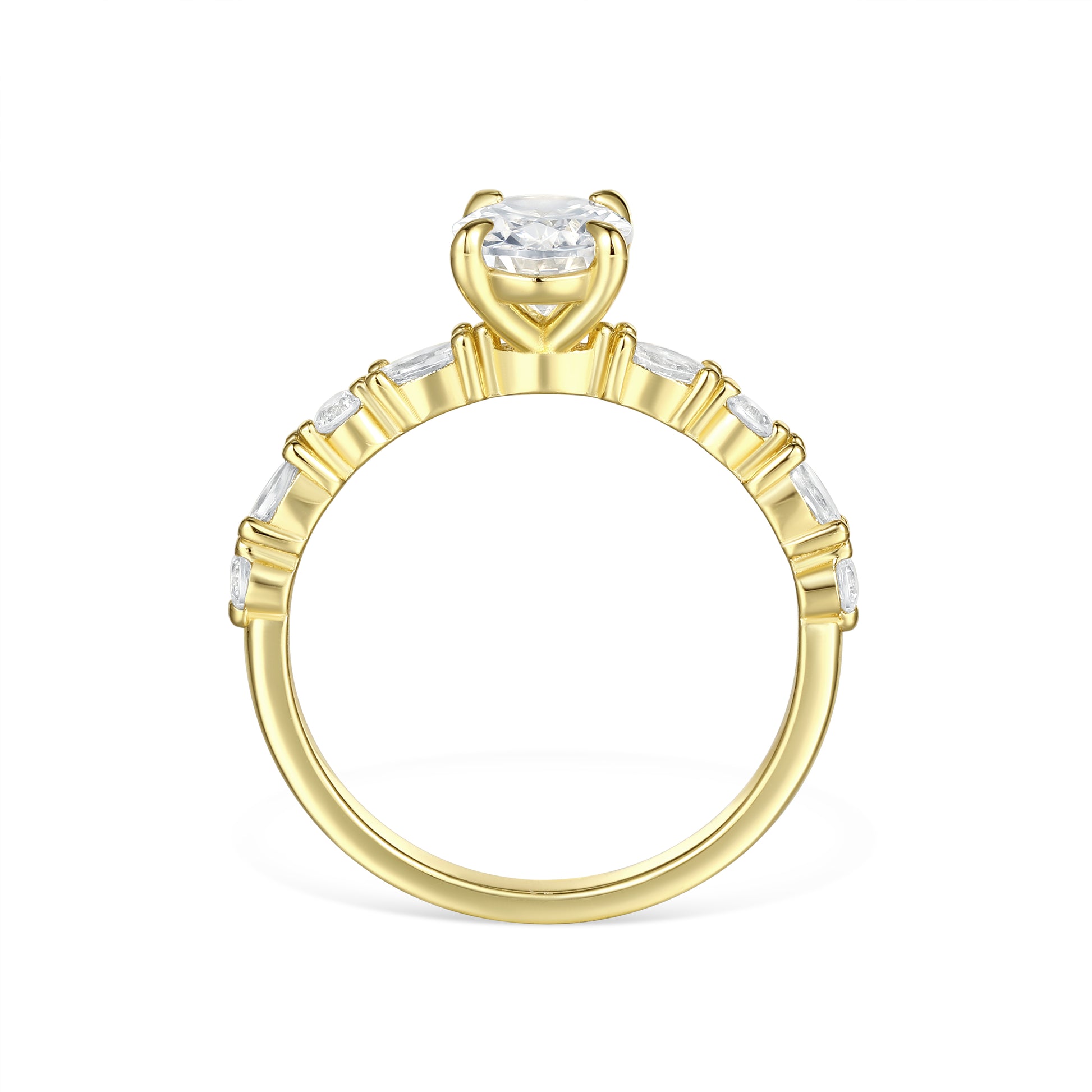 Exuding timeless elegance, The Giselle pairs a dazzling 1.5-carat oval-cut center stone with a uniquely designed half-eternity band in a radiant gold finish. The band is meticulously adorned with small, delicately placed stones on both sides, creating a look that’s as sophisticated as it is captivating. Stack it with The Amour, The Promise, or any band from our collection for a truly breathtaking set. Also available in silver.