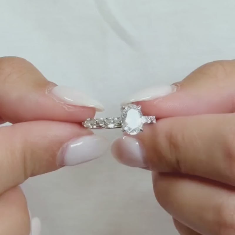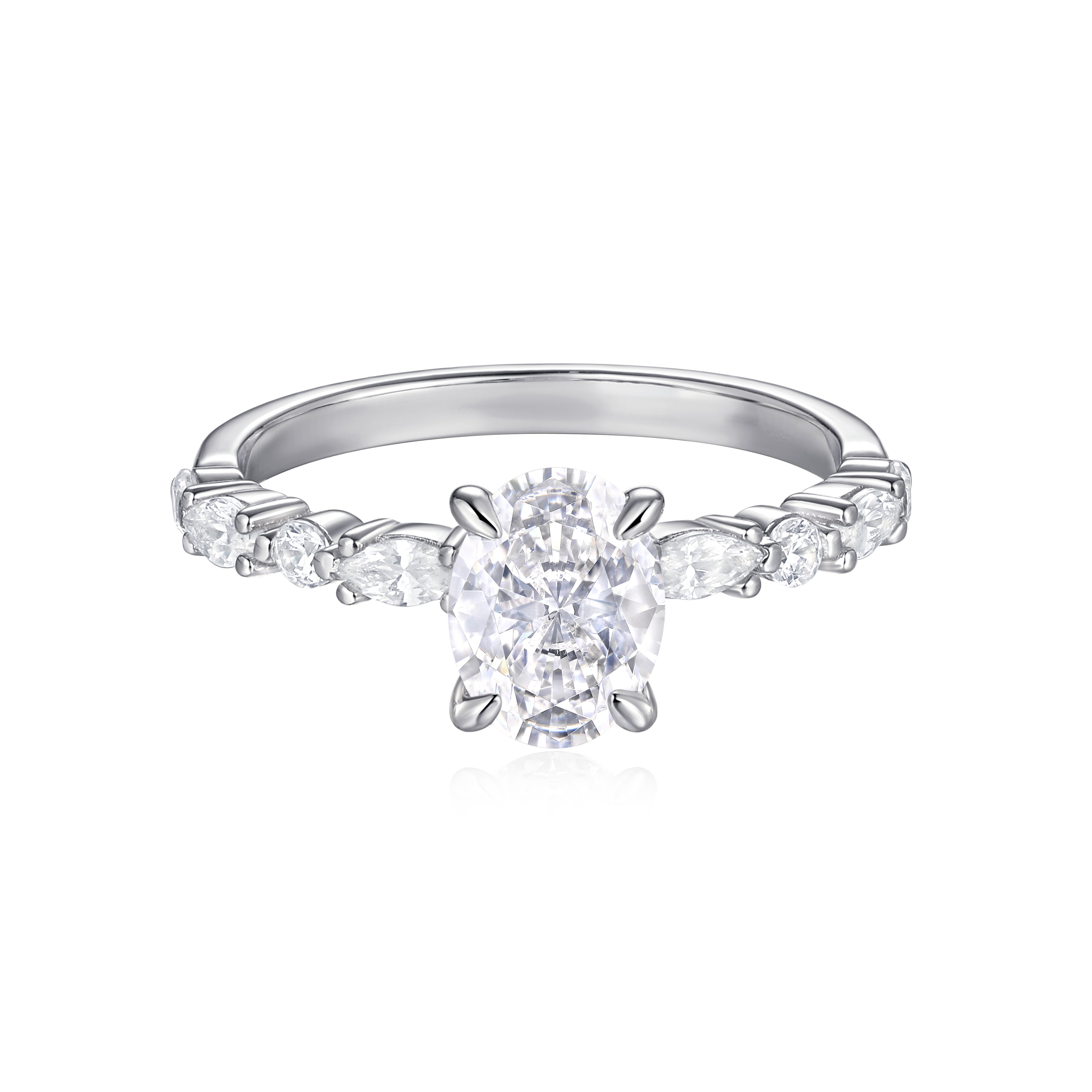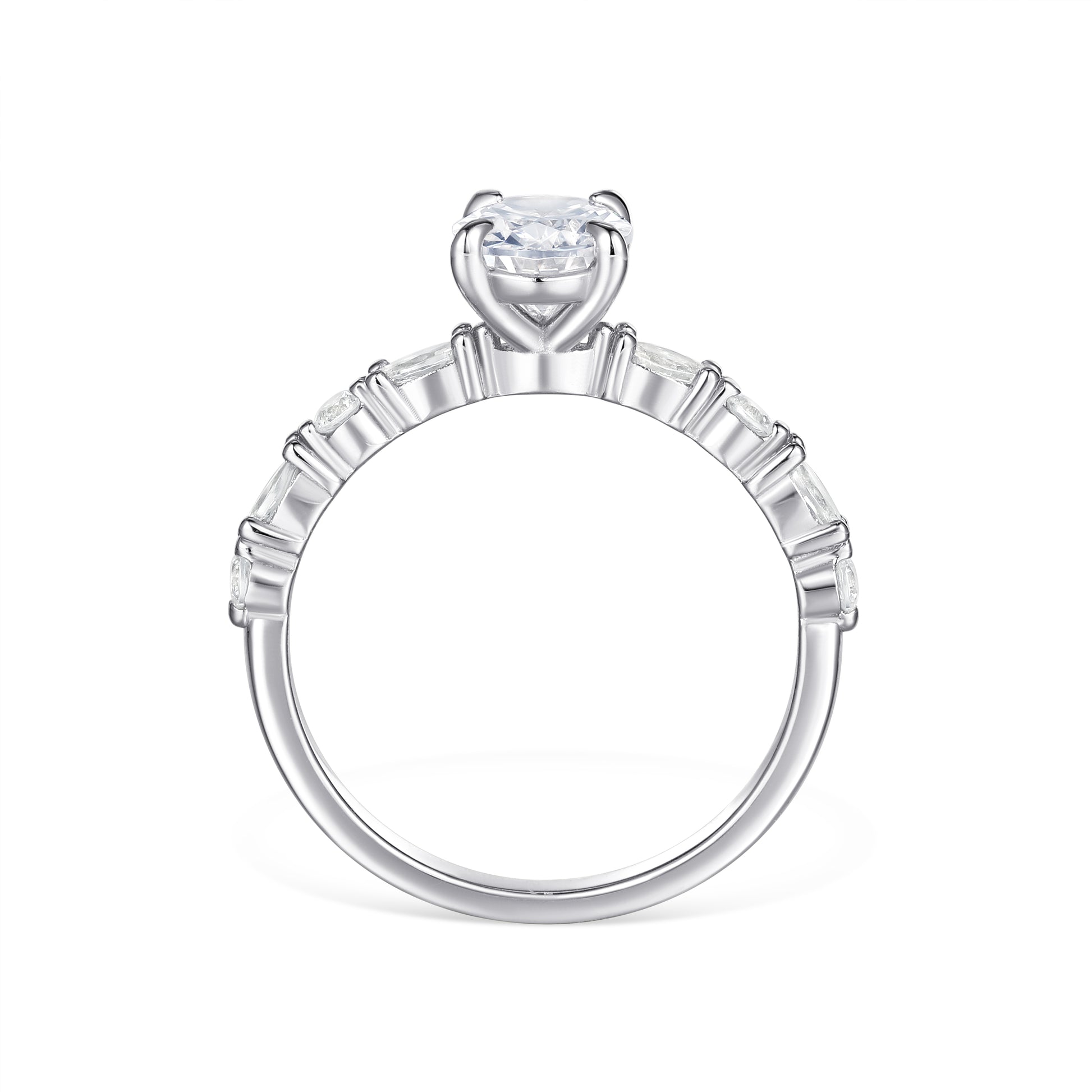One of our most beloved ring styles just got even better! The Giselle features a stunning 1.5-carat oval-cut center stone paired with a half-eternity band that showcases a twisted vintage-inspired design. Delicately placed stones along both sides of the band complete its unique and elegant look. For extra sparkle, pair it with The Amour band or stack it with The Promise for a dazzling, layered effect. Also available in gold.