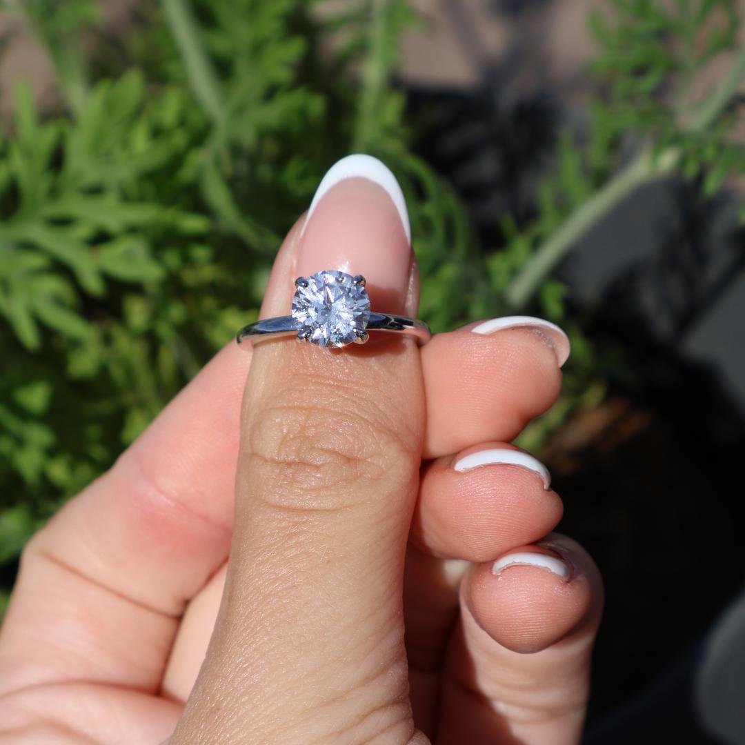 Timeless in both quality and style, The Harmony is a ring that truly shines. Showcasing a brilliant 2-carat round-cut center stone set on a sleek 925 sterling silver band, it exudes effortless elegance and captures the light from every angle. Also available in gold, this piece is designed to turn heads for years to come.