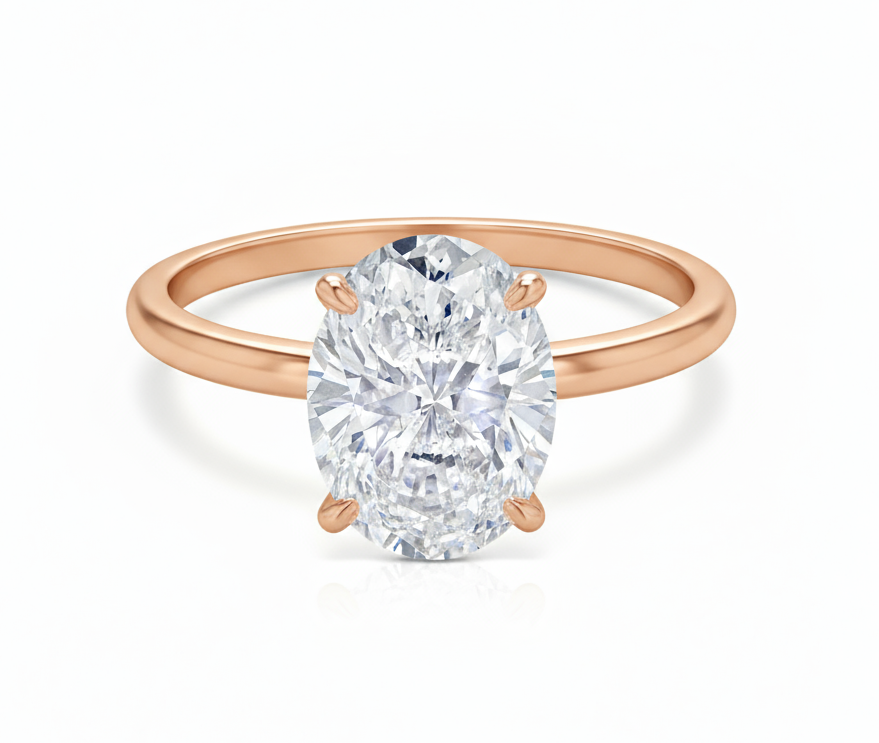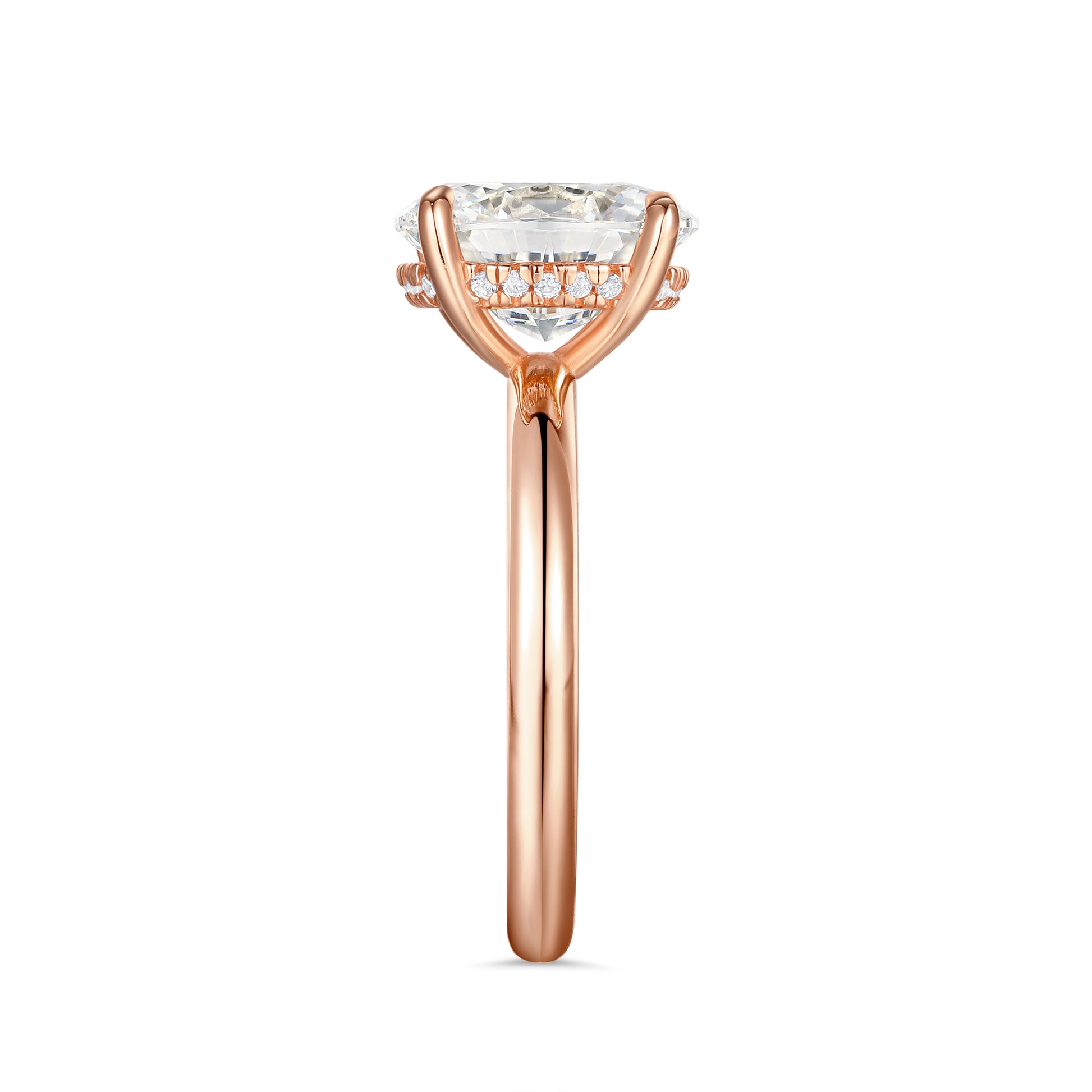 Fall in love with The Helena in rose gold, an oval solitaire engagement ring that’s as stunning as it is comfortable. Featuring a 3-carat conflict-free simulated diamond with a hidden halo for an extra touch of sparkle, this ring is perfect for everyday wear—whether running errands, at the office, or on a romantic date night. Pair it with The Forever, The Aria, or The Promise to complete your dream wedding set.