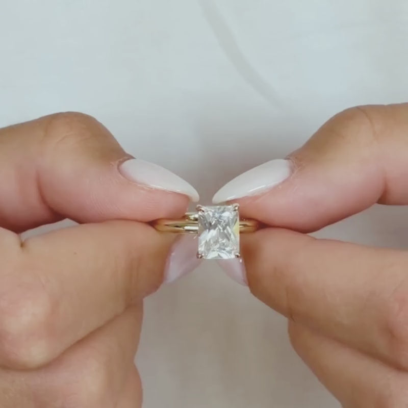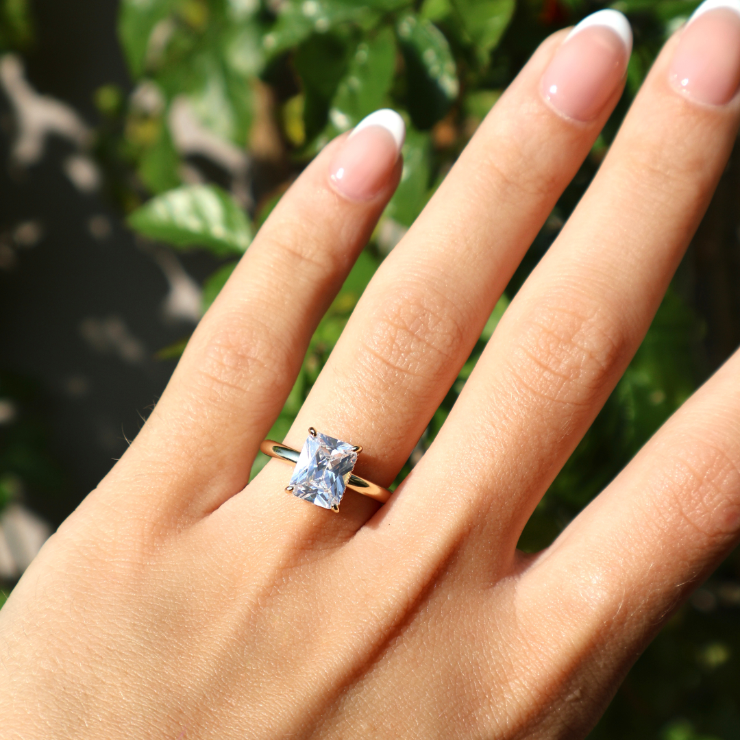 Searching for an engagement ring that stands out with elegance and confidence? Meet The Selina — a breathtaking masterpiece featuring a radiant-cut silhouette that’s as bold as it is graceful. Its 3-carat, conflict-free simulated diamond is beautifully enhanced by a hidden halo for extra brilliance and allure. Designed to captivate from every angle, The Selina is also available in silver.