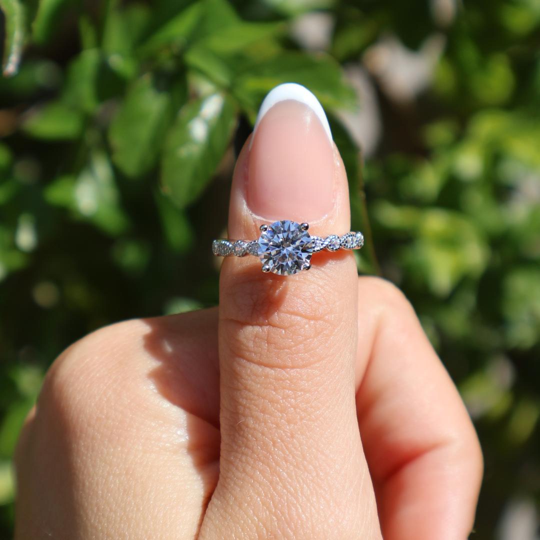 A true symbol of romance, The Seraphina showcases a stunning 1.5-carat round-cut center stone set within a vintage-inspired half-eternity design along its 2 mm band. Pair it with The Aria band for a breathtakingly radiant and elegant ring set. Crafted from premium 925 sterling silver and plated in rhodium for exceptional shine and durability, The Seraphina is a ring you’ll fall head over heels for - and never want to take off.
